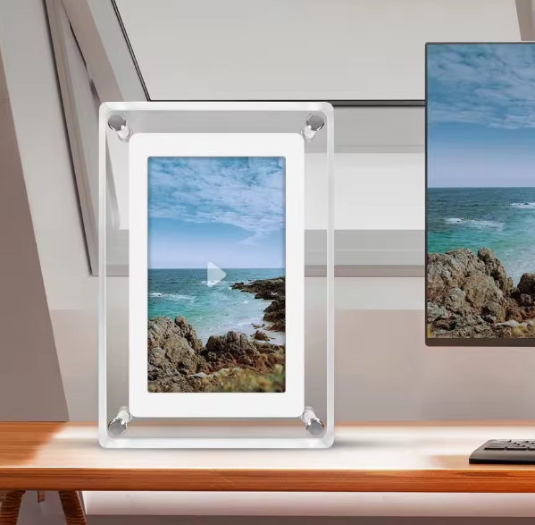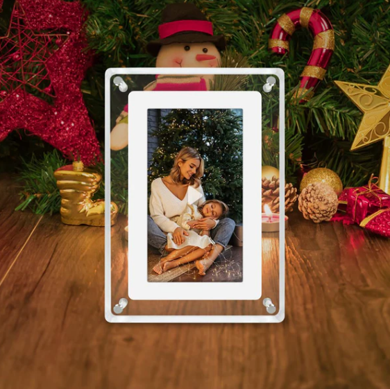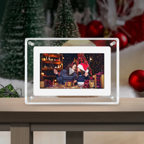 Възпроизвеждай безкрайно любимите си спомени във видеа или снимки в тази красива акрилна рамка. Просто я свържи към компютъра си или използвай мобилното приложение и качи най-добрите си кадри! 🎥💖